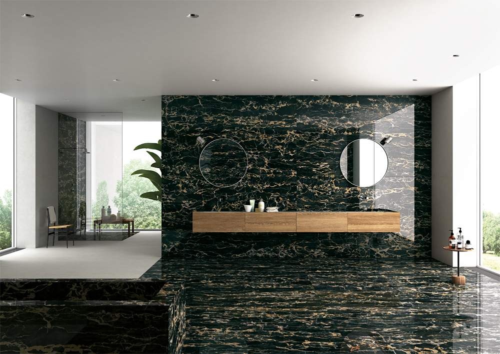 Portoro Afganistan prirodni je crni mramor s izražajnim zlatnim venama što mu daje luksuzan i elegantan izgled.