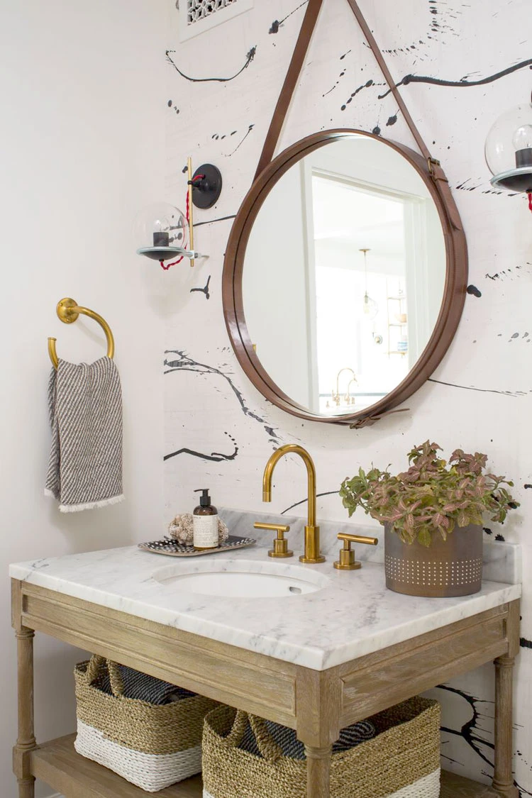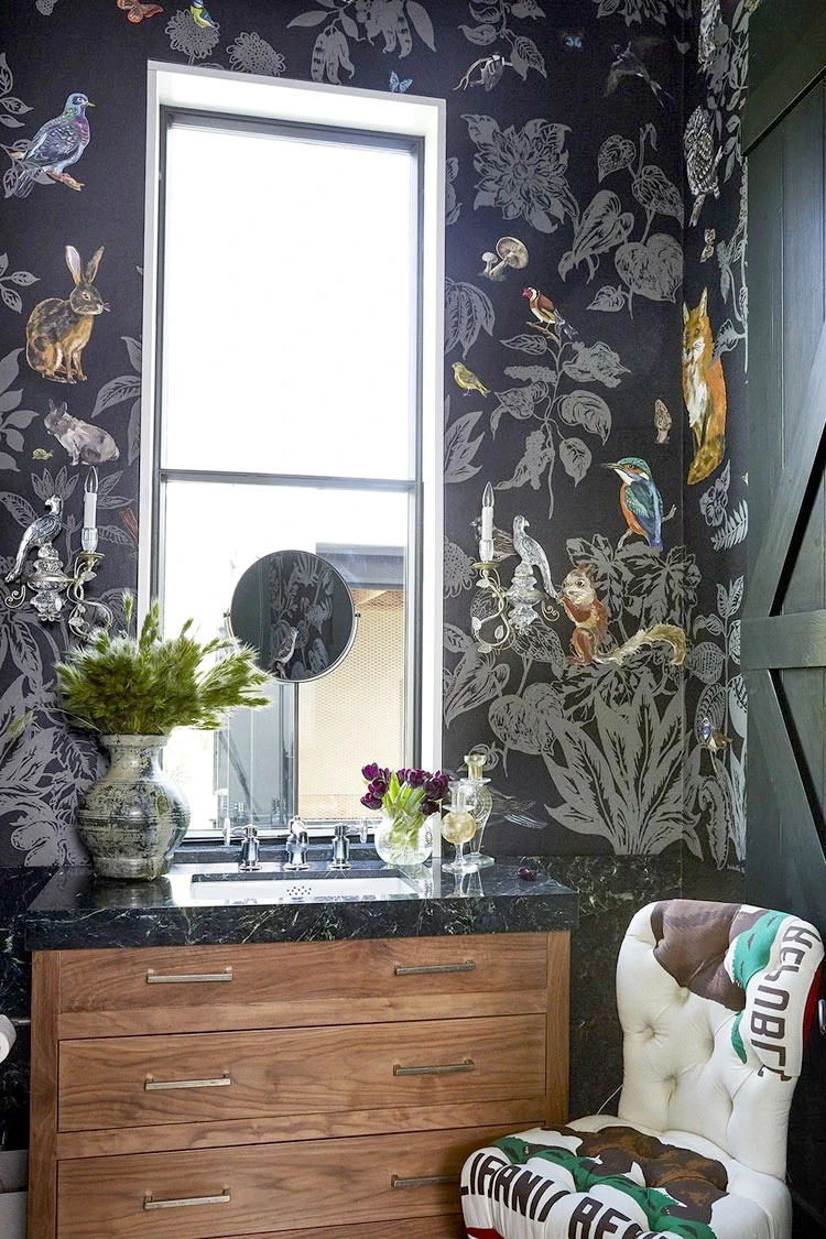 Mali prostori kao što su gostinjske kupaonice dolaze do izražaja stavljajući naglasak na jedan elemenat. Pozadina velikih razmjera visokog kontrasta proširuje mali prostor i ispunjava ga vještim stavom.