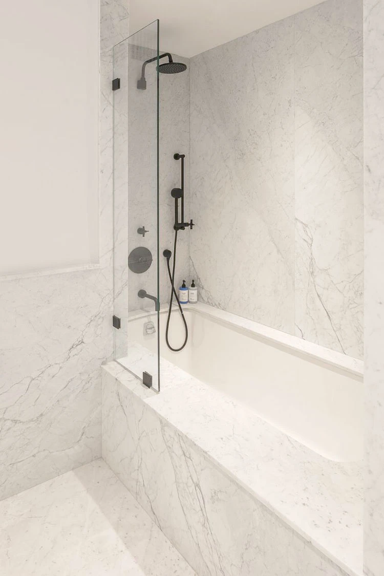 U kupaonicama ugrađujemo izloženiji vodovodni tuš. Industrijski izgled lijepo se uklapa u bijeli, moderni mramor.