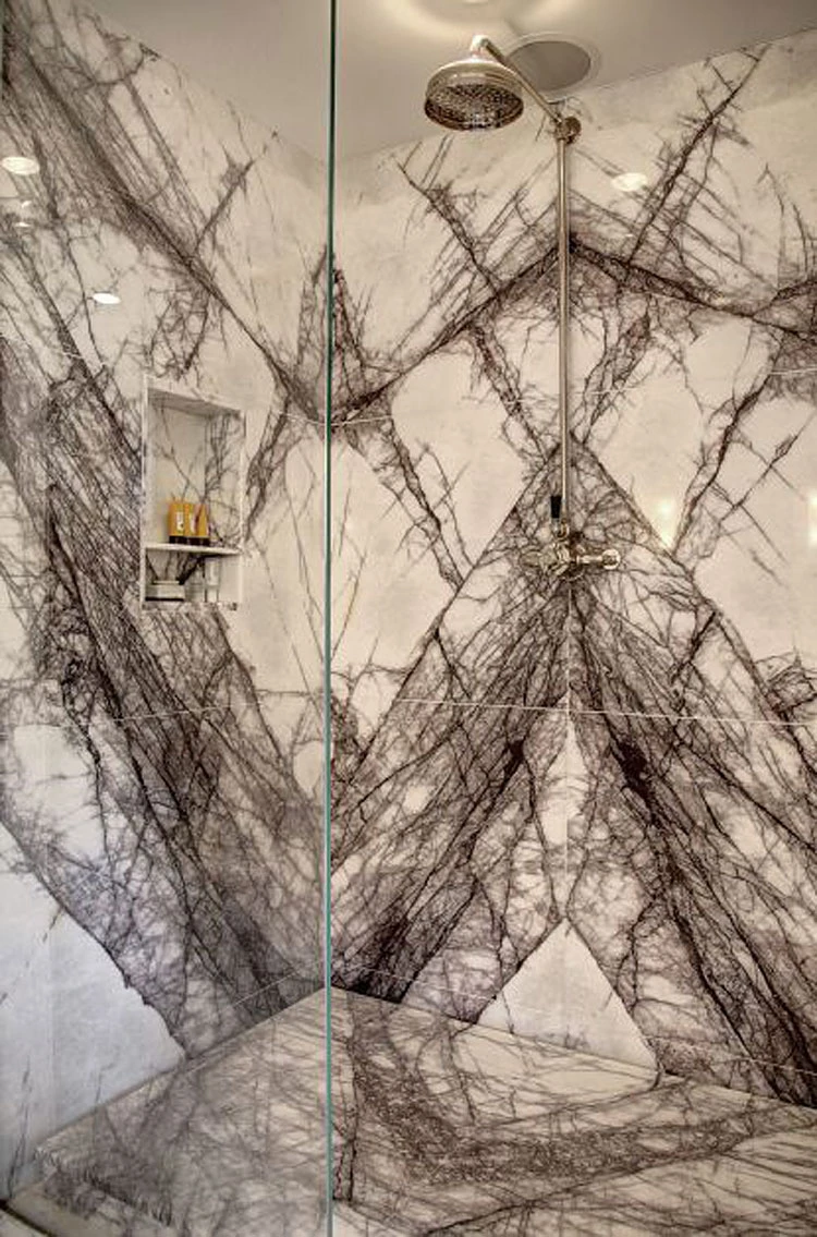 Nema više keramičkih pločica i bezbroj fuga! Sada zidovi i podovi u kupaonici mogu imati luksuznu površinu velike mramorne ploče, bilo da se radi o pravom kamenu ili o velikim formatima gres keramike koje imitiraju kamen. Za pod u tušu odaberite hrapaviju obradu koja će vam osigurati potrebnu protukliznost.